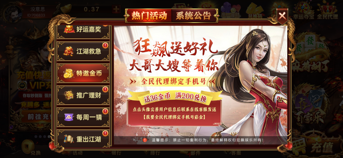 • 狂飙娱乐注册送36绑定手机号和银行卡联系客服去领取