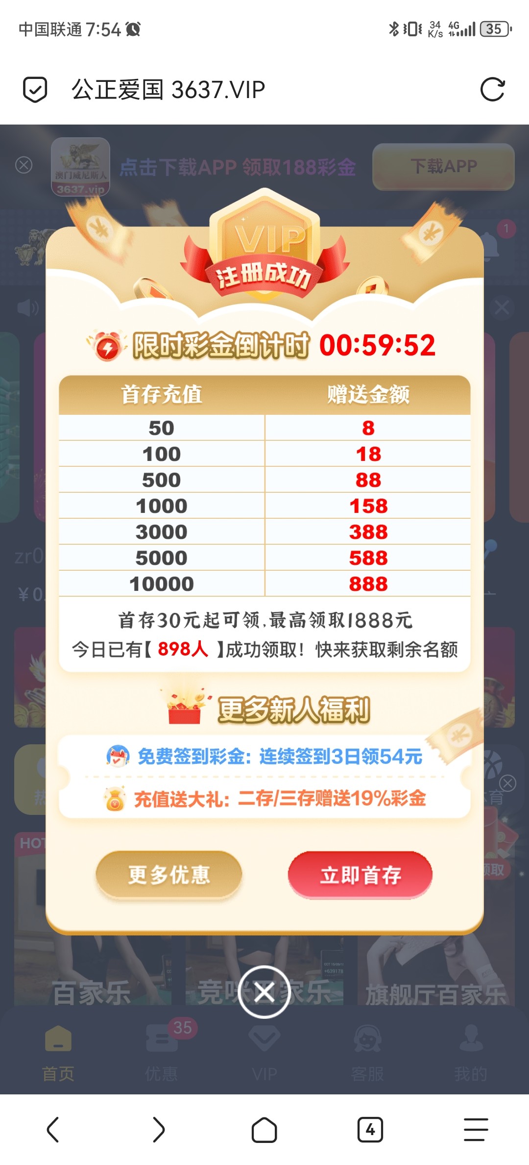 地址 6333139.com  自己注册绑定好名字跟手机号码 会有电话回访 送36块  3倍水 满100提款