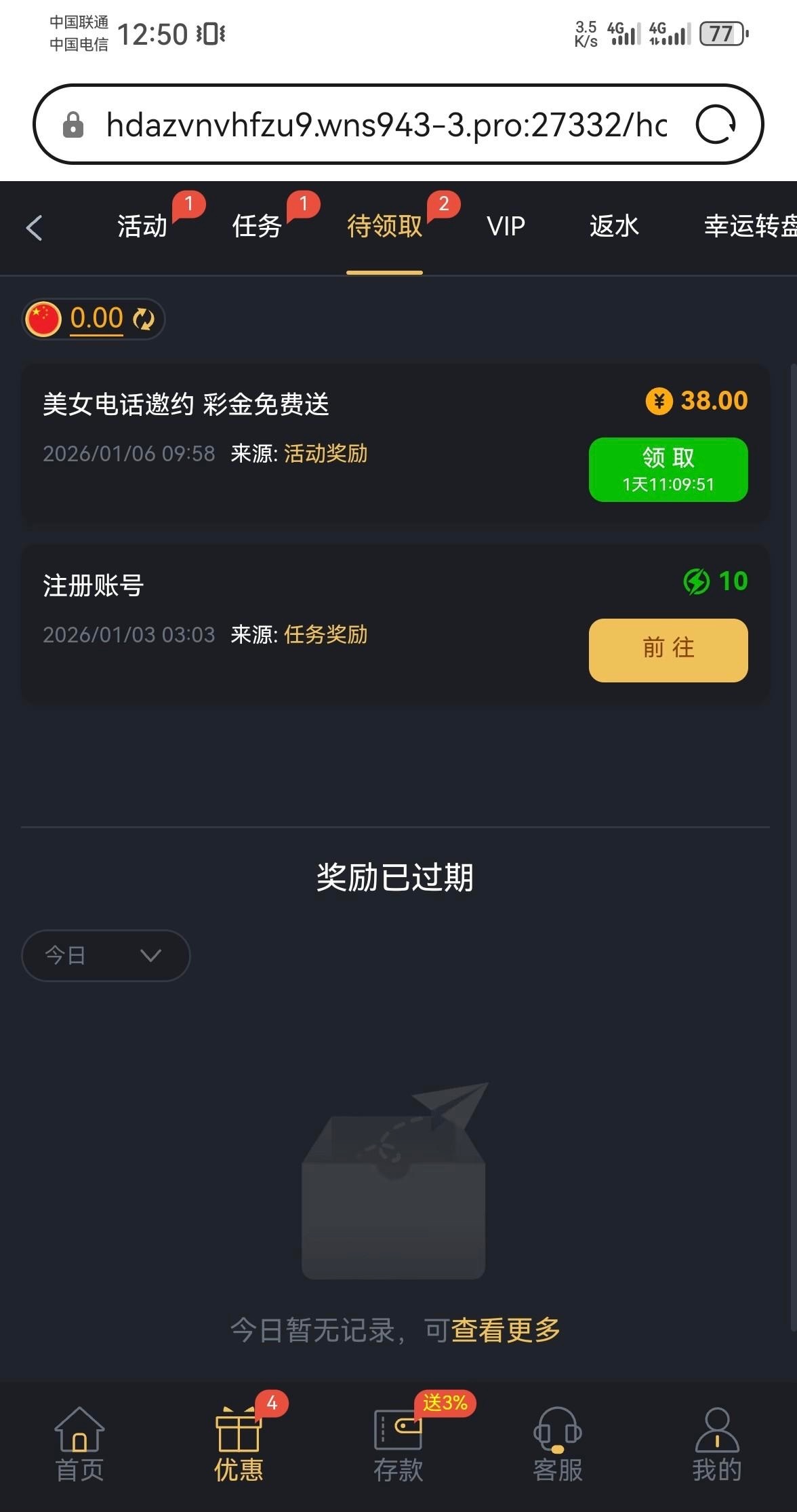 我是3号注册的,今天就打电话过来说电话特邀彩金,登录就有的,我没有充值过,老哥可以去登录碰一下,或者联系在线客服碰瓷